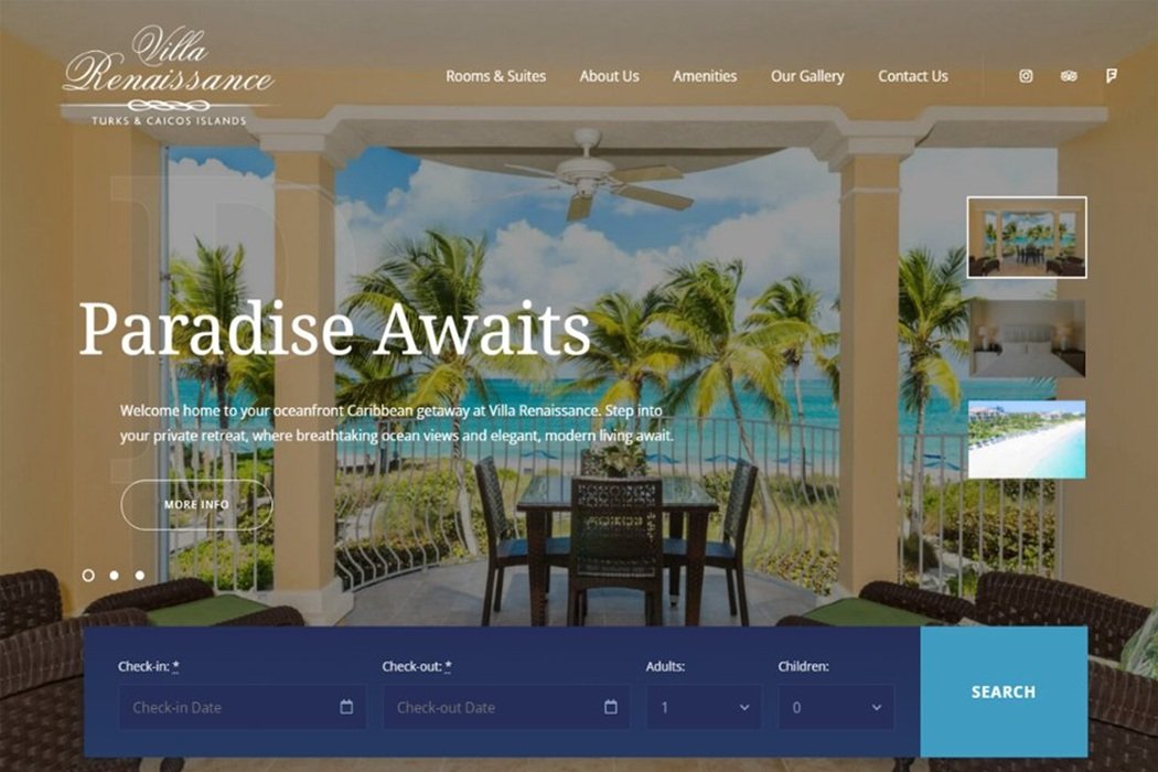 Villa Renaissance 206 is a luxury stay at Grace Bay designed to offer a premium and memorable experience in Turks & Caicos. To reflect this, EncoderLabs redesigned the website with a modern, mobile-first interface, improved visuals, and a faster, more intuitive user experience. The new platform was built with SEO and performance in mind to attract more direct travelers. This transformation resulted in a 40% increase in direct bookings, higher engagement, and reduced dependence on third-party platforms.